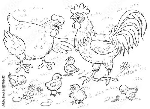Coloring Page Outline Of Cartoon Chicken Or Hen With Chicks