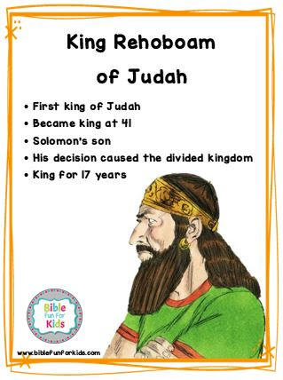 Jeroboam was one of solomons former officials an. Rehoboam was one of solomons sons and king of judah in the south 1 kings 1143.